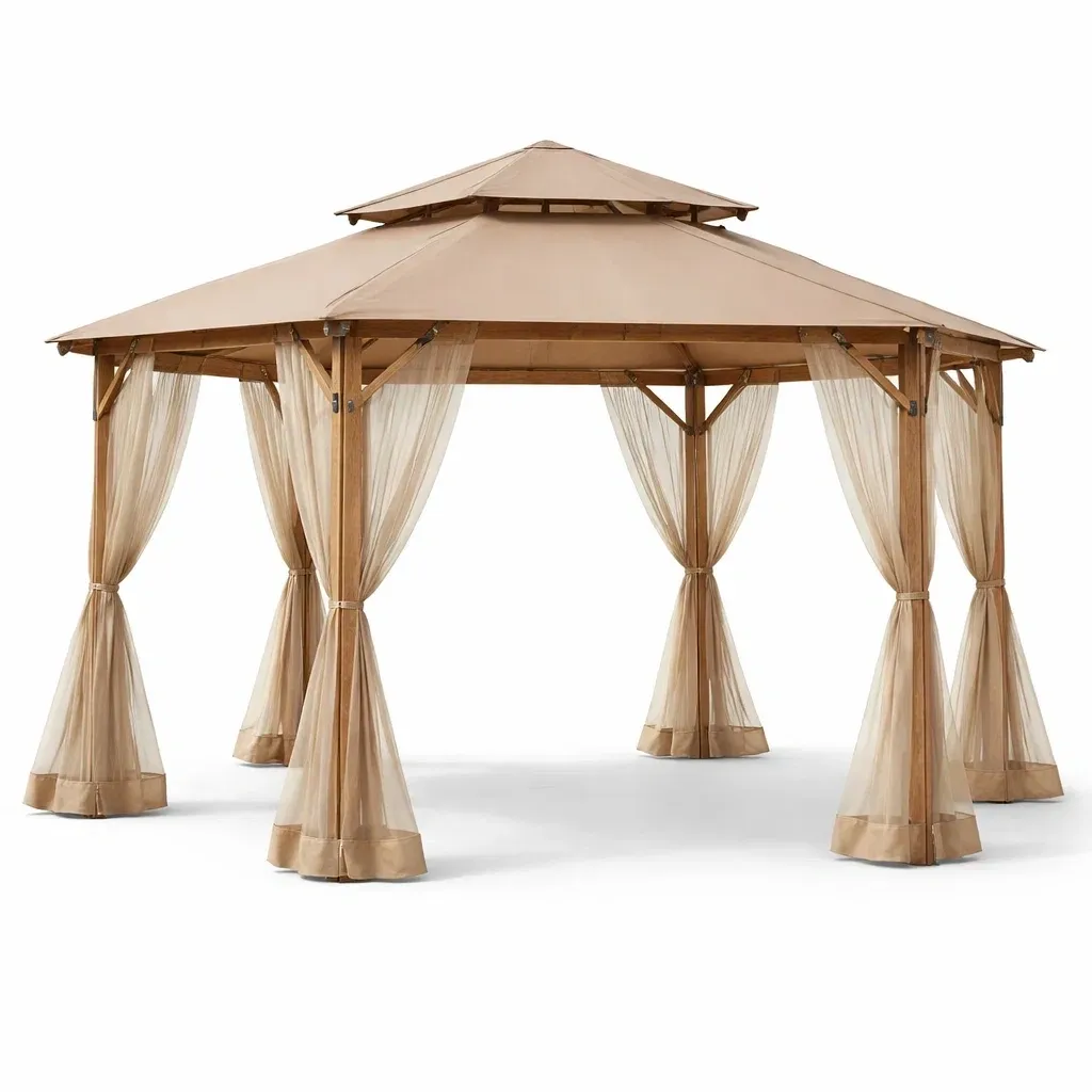 Padiglione bar da giardino in alluminio e legno con tettoia grigia