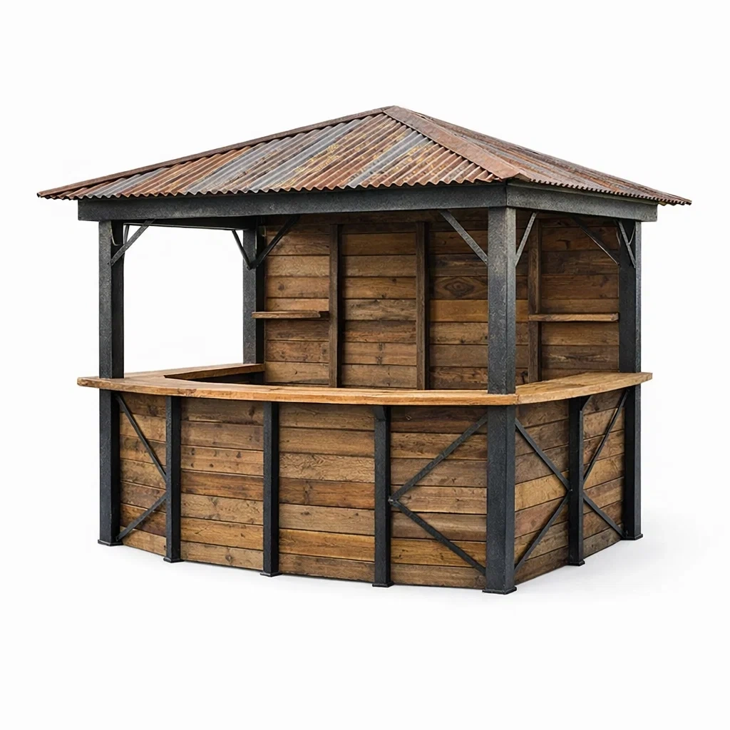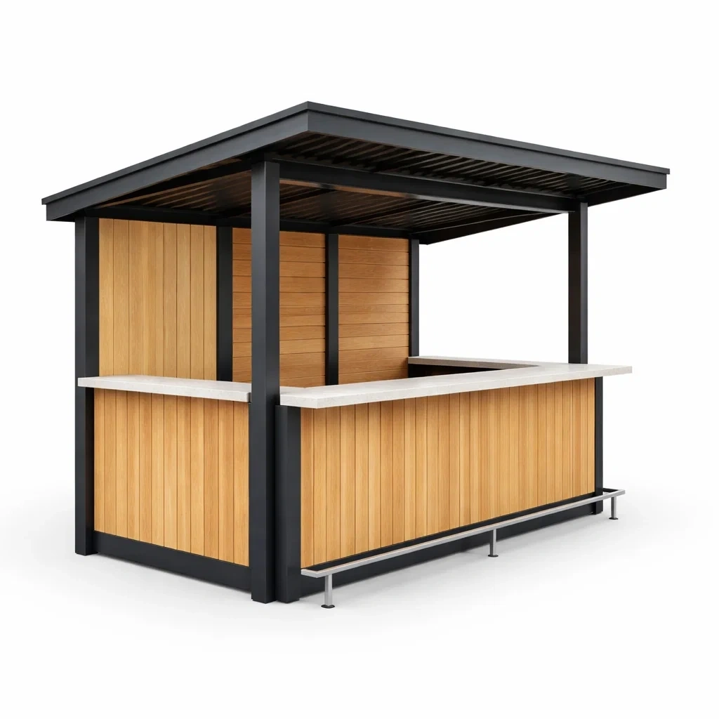 Padiglione bar in legno e acciaio per esterni marrone e grigio